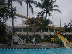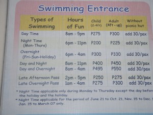 Minsang nag night swimming kami, napansin ko lang na medyo malamok dito. Natural lang siguro ito kasi, sabi nga, ang Pilipinas ay isang tropical country. Sana lang panatilihin nilang laging malinis ang tubig sa pool na ito. Minsan nga, gusto kong itanong kung ilang beses sa isang buwan pinapalitan ang tubig sa mga pool. Marami kasing tao lalo na sa summer at kaya’t di maiwasang dumumi ang tubig sa dami ng naliligo. (My pics/August 2011)